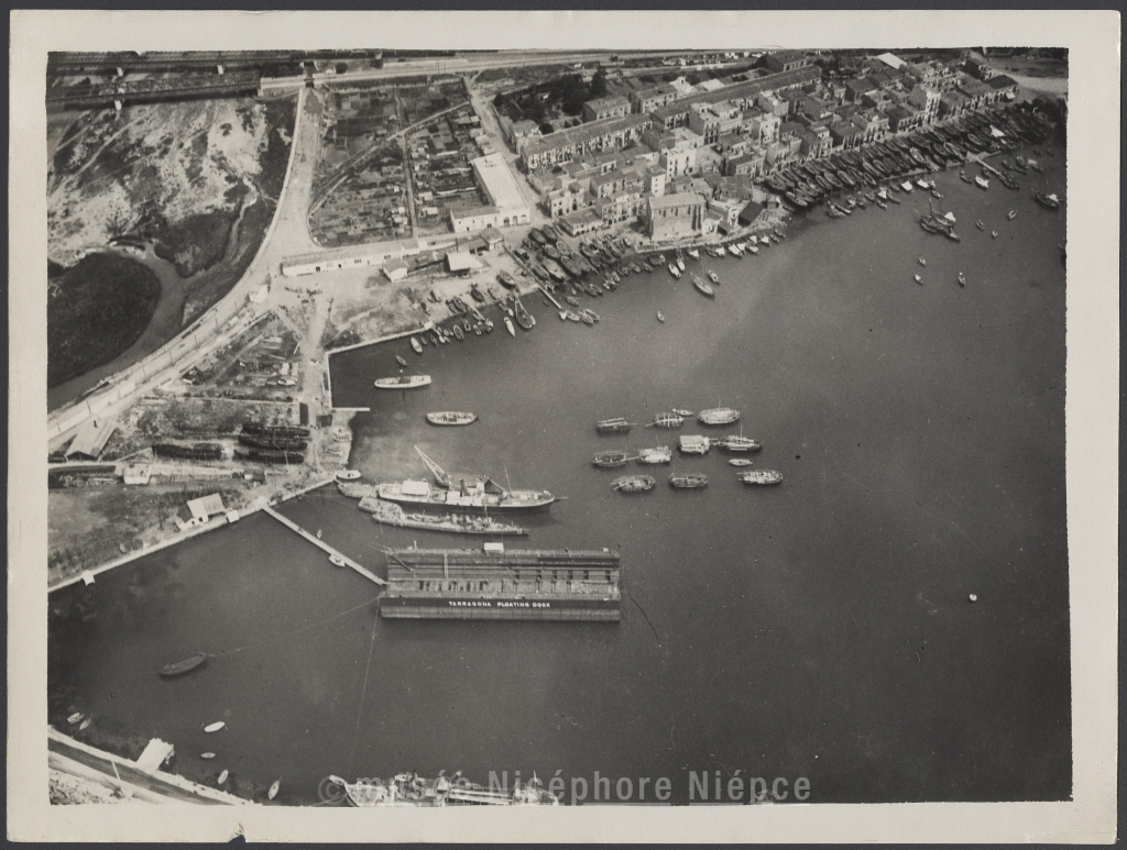 Vue aérienne d'un port marocain avec plateforme Tarragona Floating Dock