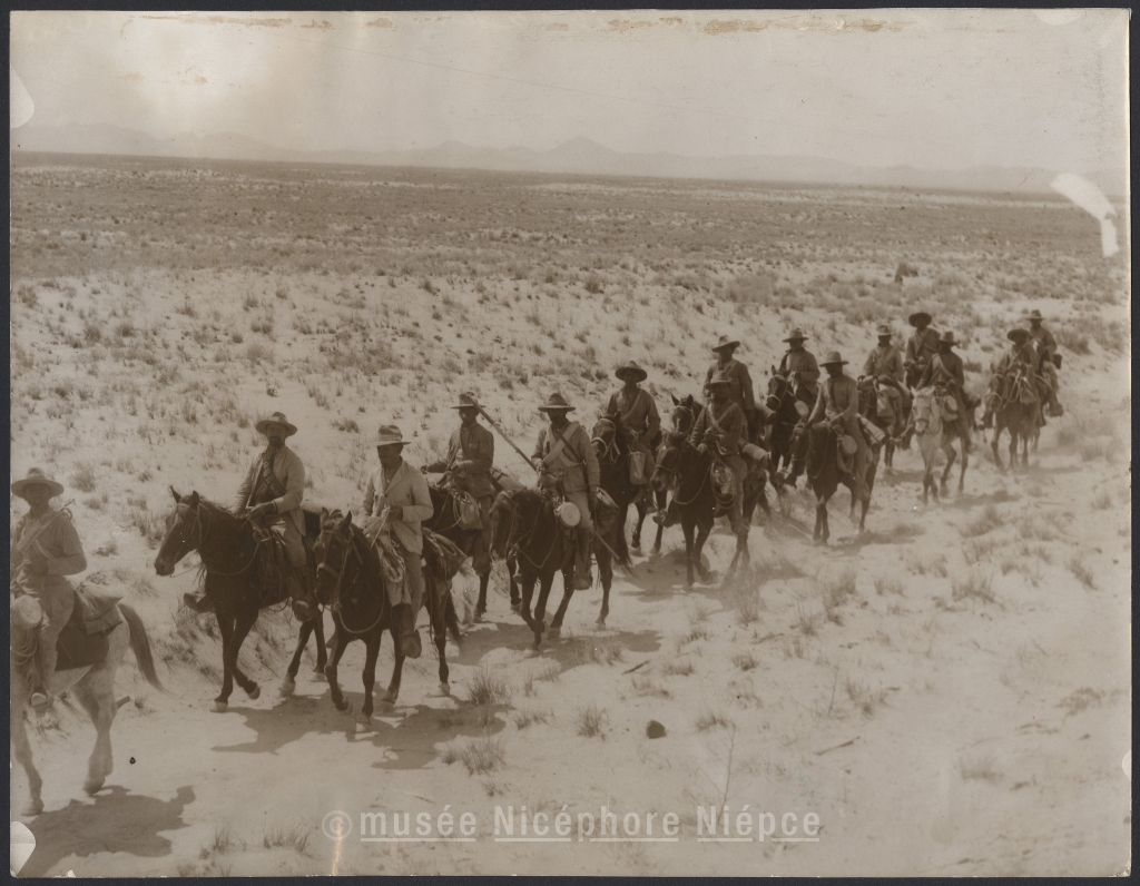 Avanzads de los rebeldes que se dirigen hacia / Torreon. Fotografia tomada a pocas millas / al norte de Gomez alacio.