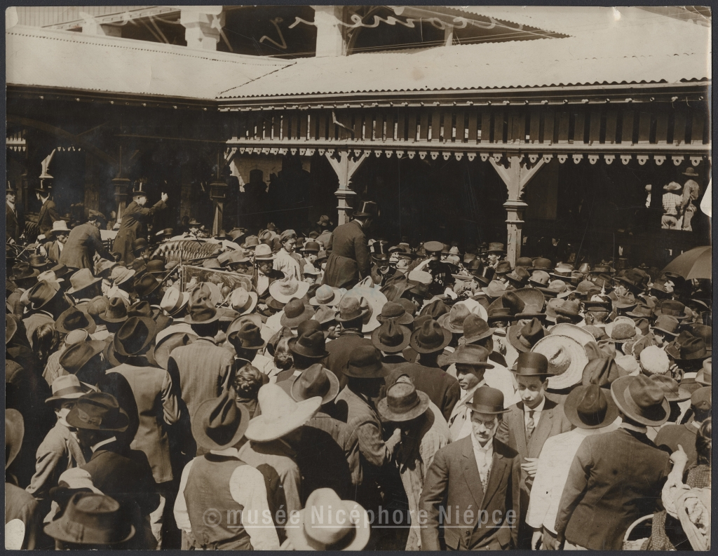 Photograph showing the great crowd that greated the Japonese army officers who are to train the Mexican army