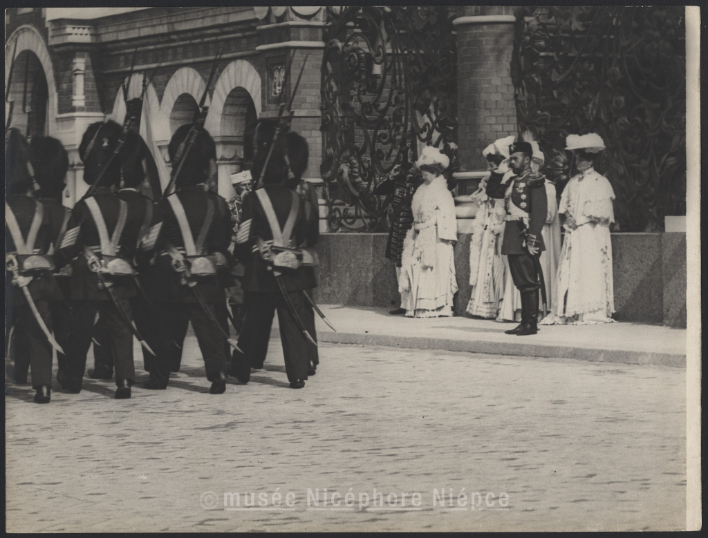 scène - de dos - soldat - revue - manifestation militaire - Fédération de Russie - Nicolas II de Russie - impératrice de Russie - CHUSSEAU-FLAVIENS