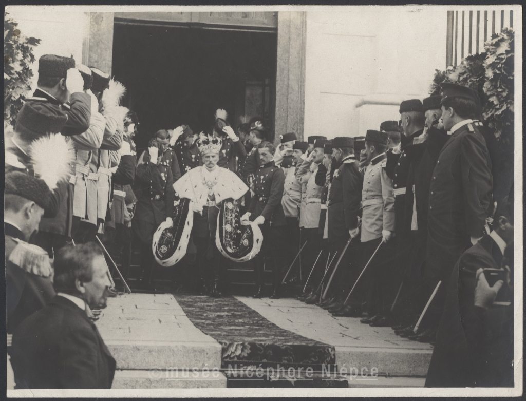 Le Roi sort de la Cathédrale / Pierre Ier de Serbie lors de / son couronnement à Belgrade