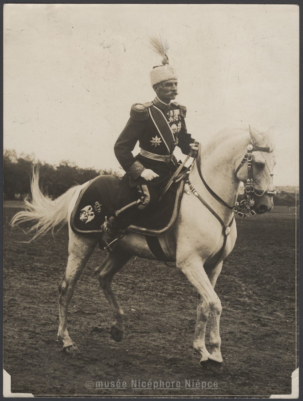portrait - décoration - cheval - cavalier - représentation animalière - uniforme - roi de Serbie - aigrette - Anonyme - CHUSSEAU-FLAVIENS