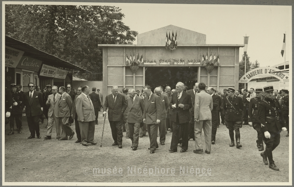 Inauguration de la XIXè Foire-Exposition par le Préfet Lambert, accompagné de Mr Nouelle, maire et de Mr Borgeot, Prt du Conseil Gl 21 Juin 1953