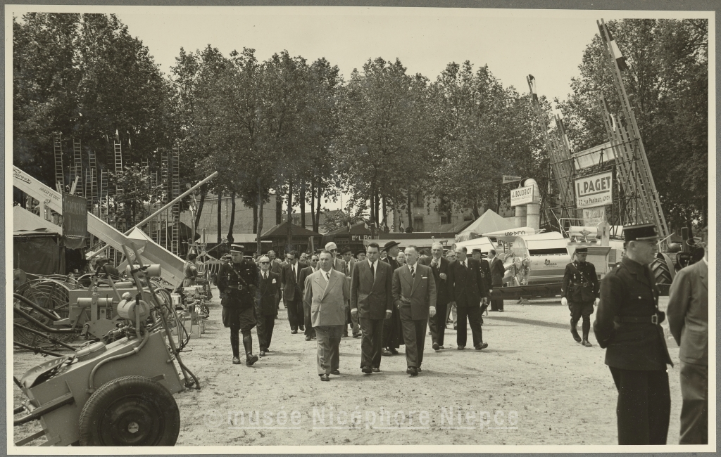 Inauguration de la XIXè Foire-Exposition par le Préfet Lambert, accompagné de Mr Nouelle, maire et de Mr Borgeot, Prt du Conseil Gl 21 Juin 1953
