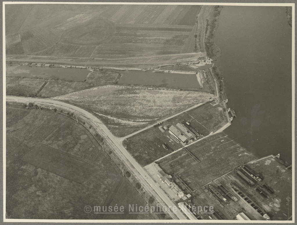 Chalon vu des airs le slip-way 3 octobre 1953