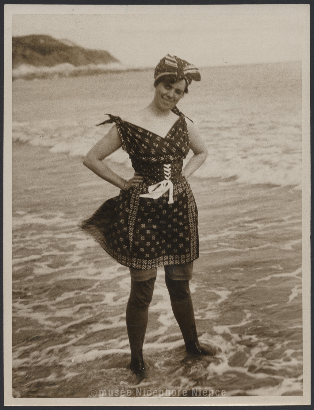 FASHION ON THE COAST. / A BATHING COSTUME OF THREEPENNY POCKETHANKERCHIEFS.
