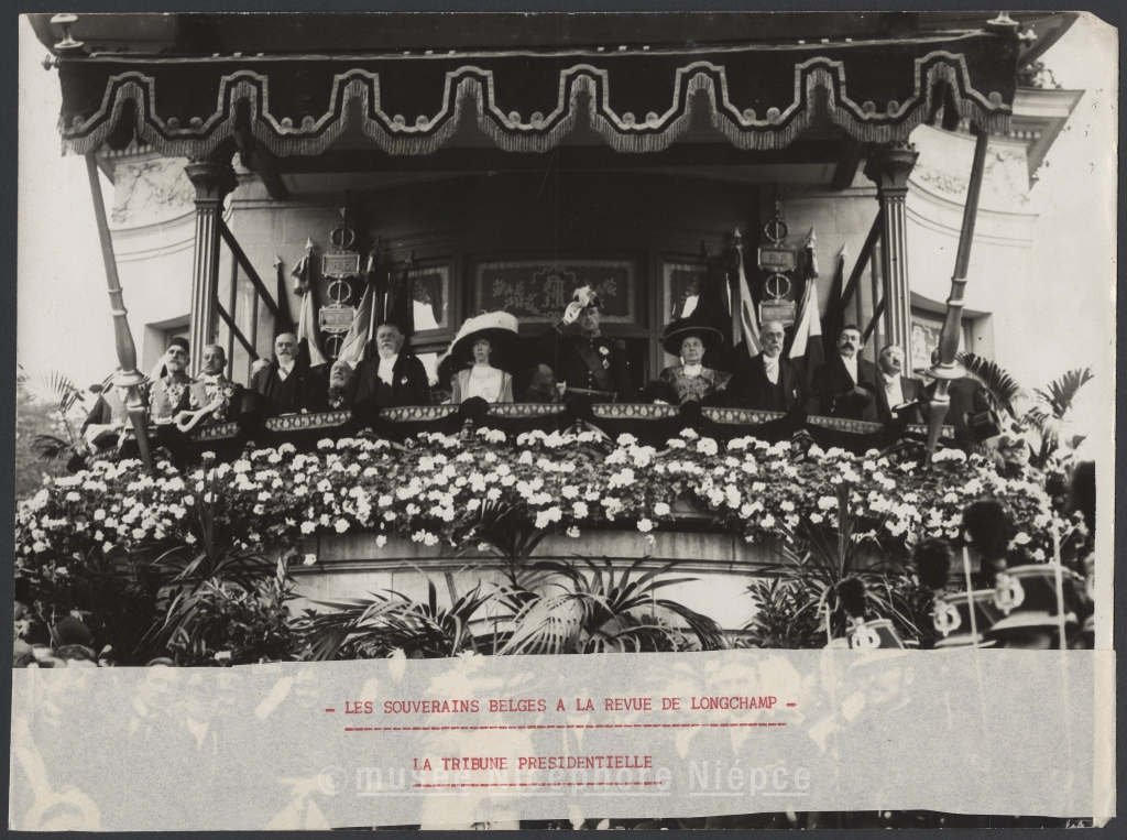 LES SOUVERAINS BELGES A LA REVUE DE LONGCHAMP - / LA TRIBUNE PRESIDENTIELLE