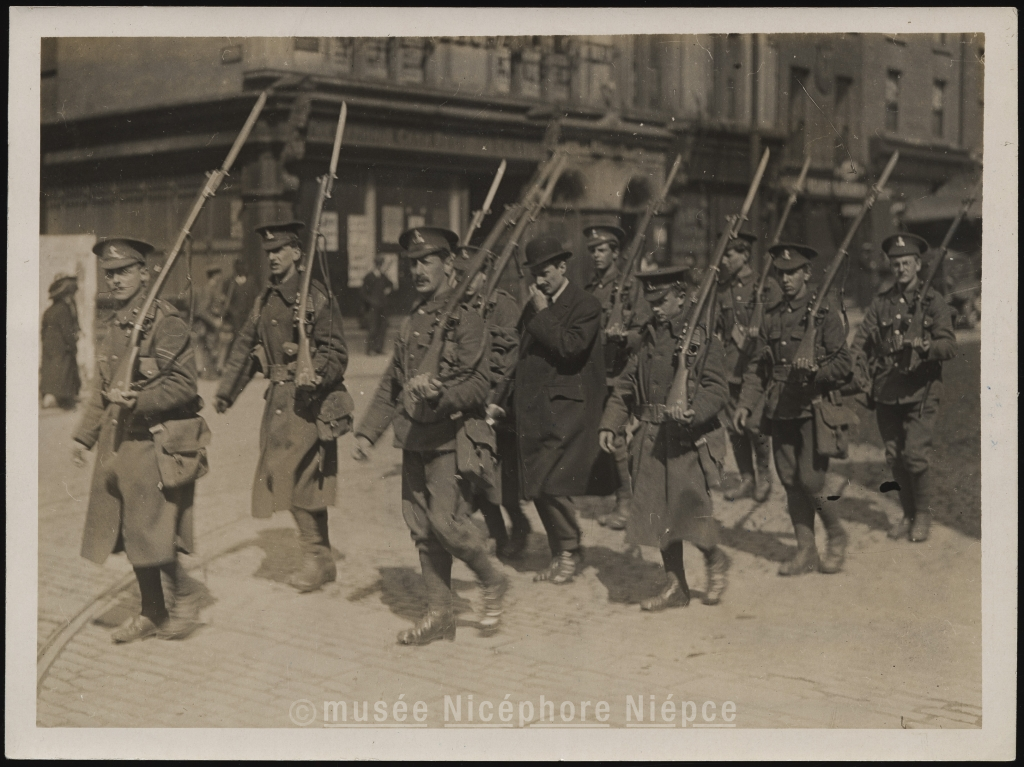 scène - soldat - fusil - la marche - captif - uniforme - Irlandais - Dublin - CHUSSEAU-FLAVIENS