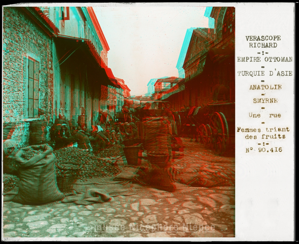 EMPIRE OTTOMAN TURQUIE D'ASIE ANATOLIE SMYRNE Une rue Femmes triant des fruits