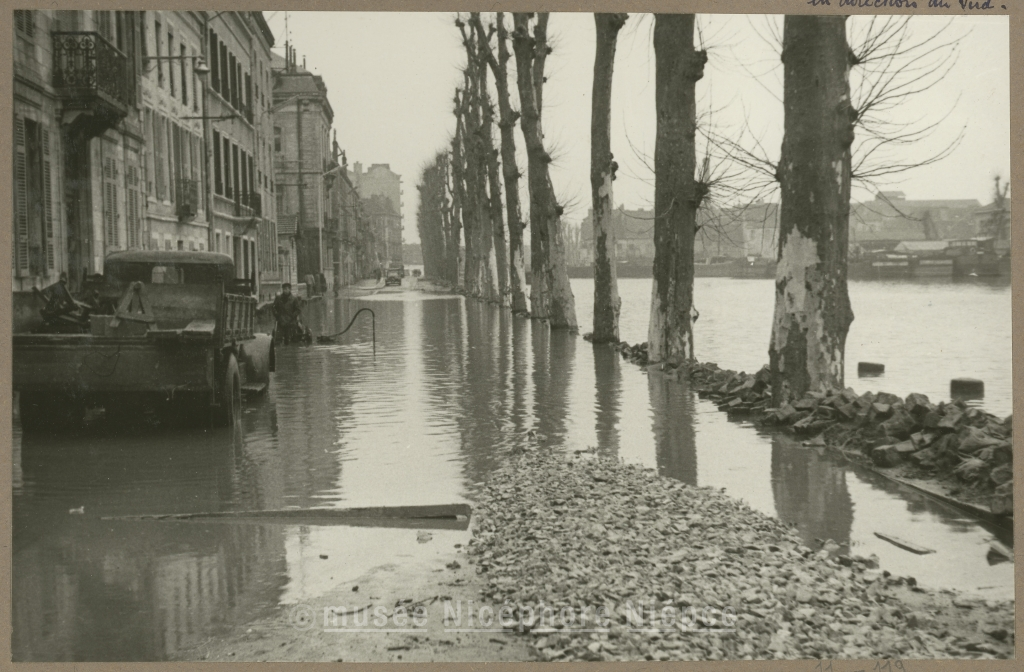 Inondations de Janvier 1955 Quai Michelet, en direction du Sud