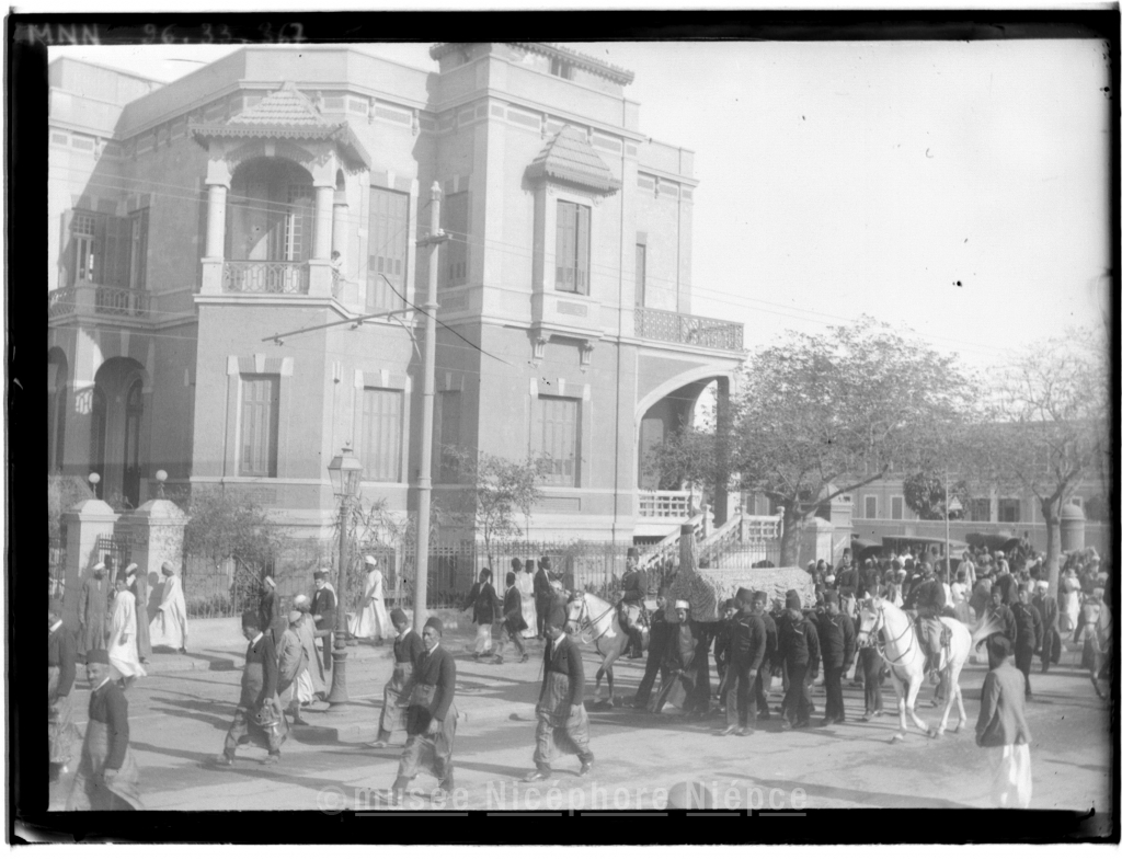 Egypte, sépulture de Khaïry bey, chambellan du sultan, le cercueil porté par les marins