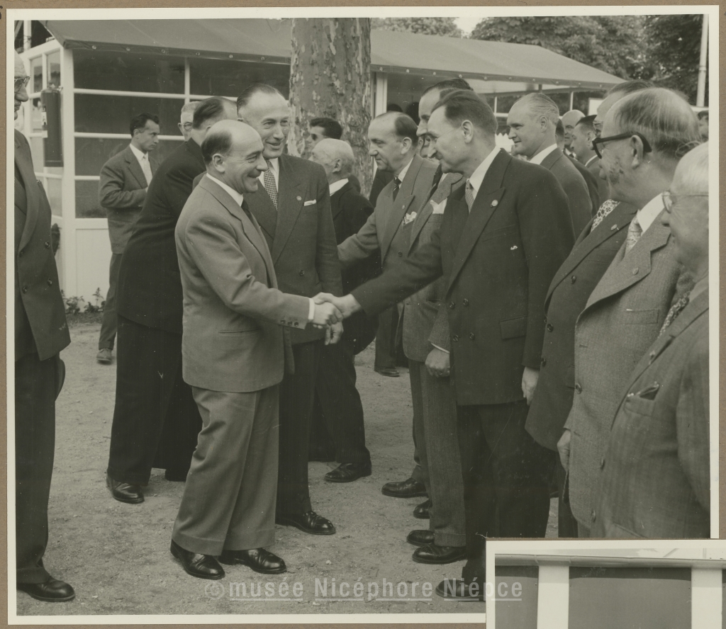 Le 24 Juin 1956, inauguration de la XXIIème Foire-Exposition, par M. Billières, Ministre de l'Education Nationale, accompagné de M. Vacher-Desvernais, délégué général du Centre National du Commerce extérieur au Ministère des Affaires Etrangères, et de M. le Préfet Chopin