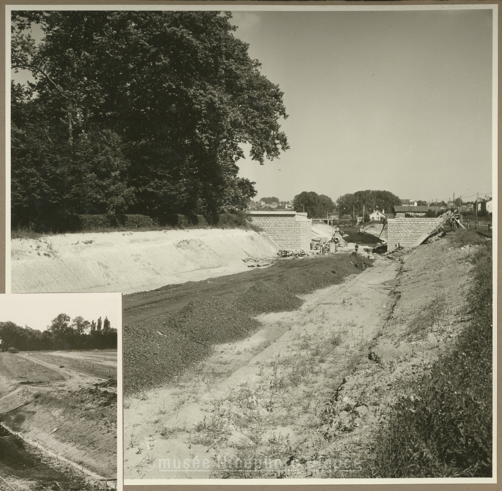 A Corcelles, les travaux de surbaissement de la Route Nationale 78 pour permettre son passage sous la déviation de la route Natle 6 en construction, approchent de leur fin. 25 Juillet 1956