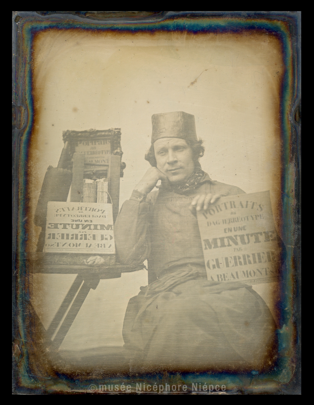 Autoportrait d'un daguerréotypiste faisant sa publicité