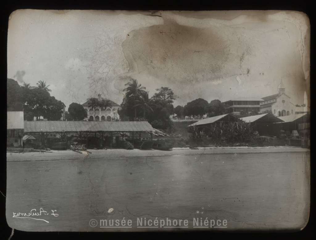 Vue de Libreville prise de la jetée. / hotel du Commissionaire Général. 1898
