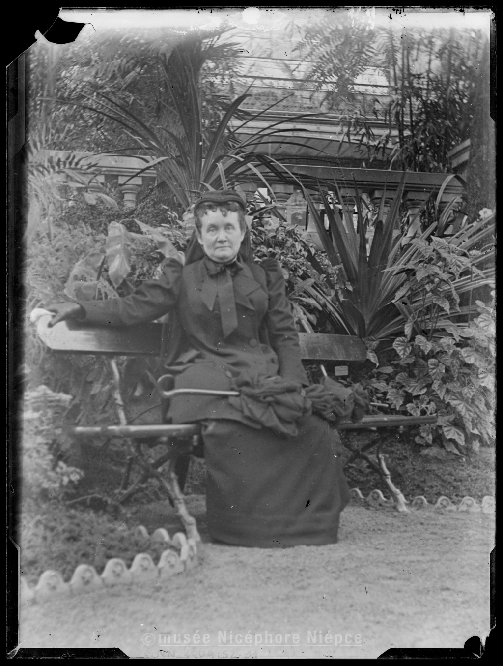 Femme assise sur un banc dans un jardin botanique
