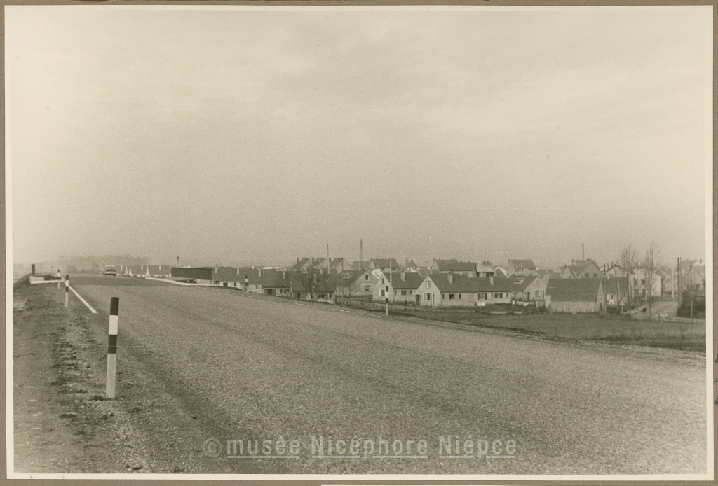 Le 16 Novembre 1957, la déviation de la RN6 d'une longueur de 10 kms, à l'ouest de Chalon est inaugurée par M. Chopin, Préfet de Saône et Loire, et aussitôt ouverte à la circulation Le franchissement, par un passage supérieur, de la voie ferrée de Givry, à droite, le quartier des Charreaux