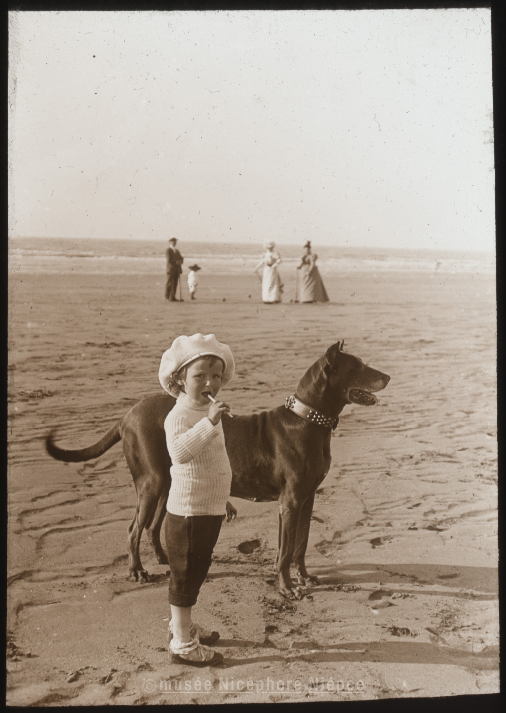 Enfant près dun chien sur une plage