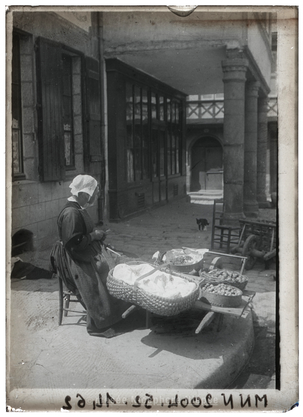 Marchande devant la maison dite aux trois piliers sur la place du Martray à Pontivy