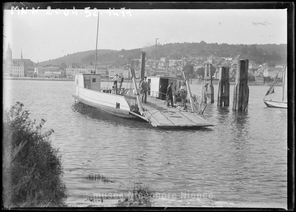 L'arrivée du bac pour Caudebec (l église Notre-Dame dans le fond)