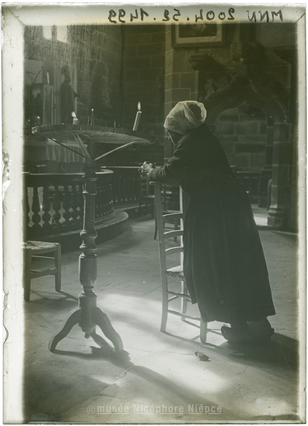 Femme sur un prie-dieu dans la chapelle Notre-Dame de la Clarté à Ploumanach