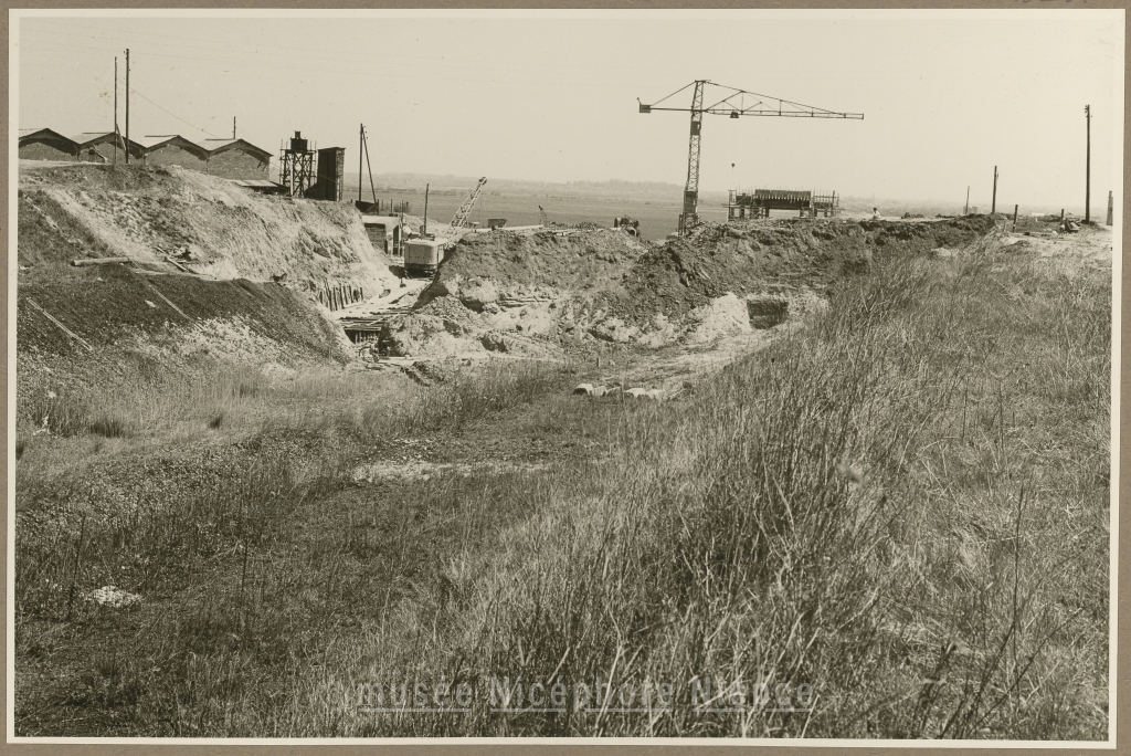 Sur la déviation du Canal du Centre dont les travaux vont être poursuivis : - construction du pont de la voie ferrée Chalon-Dôle 2 Mai 1958