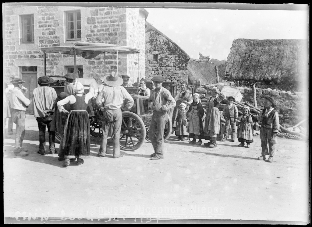 Badauds autour dune automobile en Bretagne