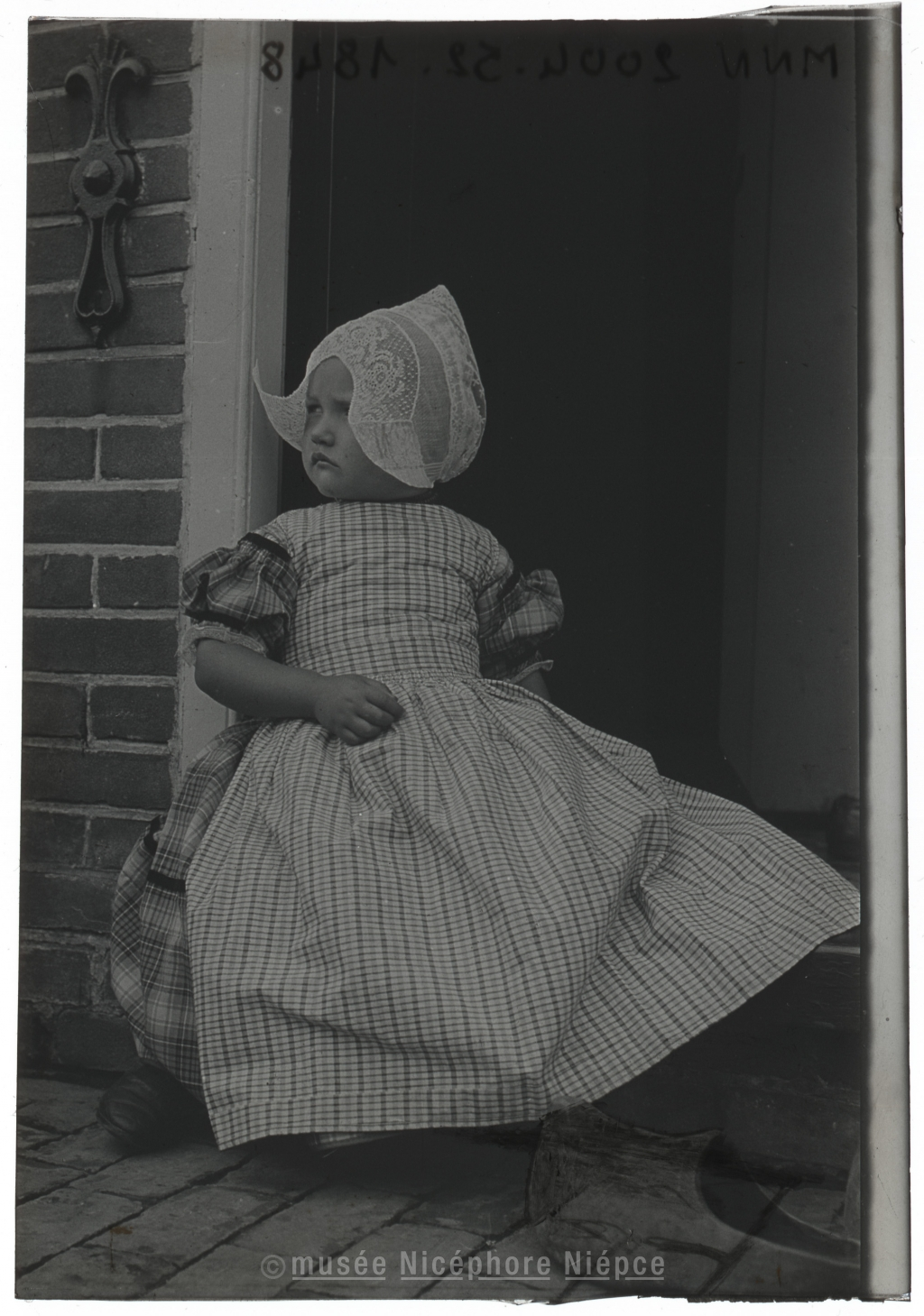 Enfant hollandaise assise à lentrée dune maison