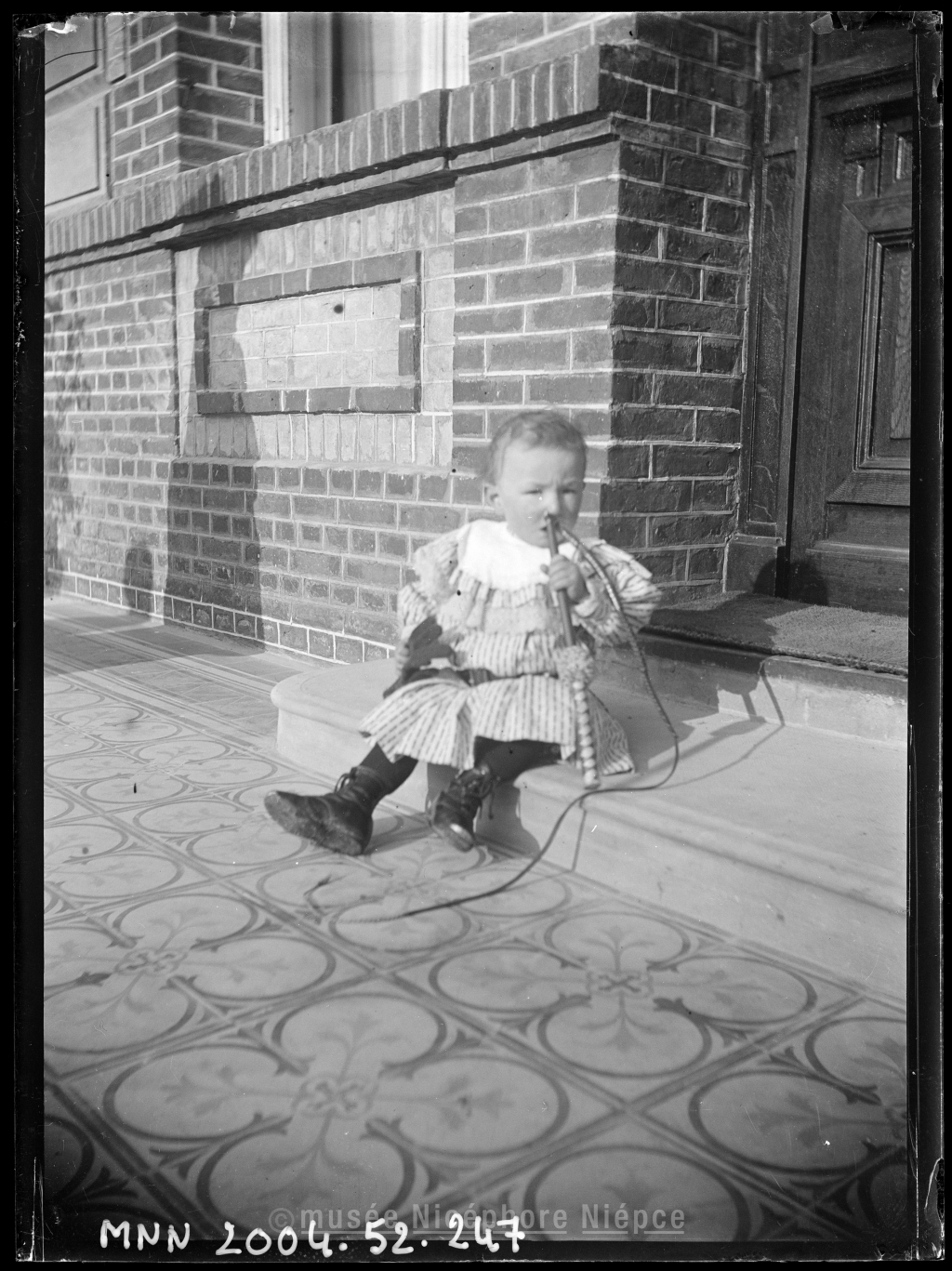 Enfant assis sur la terrasse du château