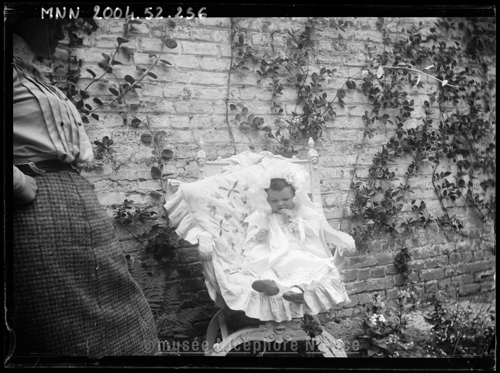 Enfant (Bob ou Jack ?) assis sur une chaise dans un jardin