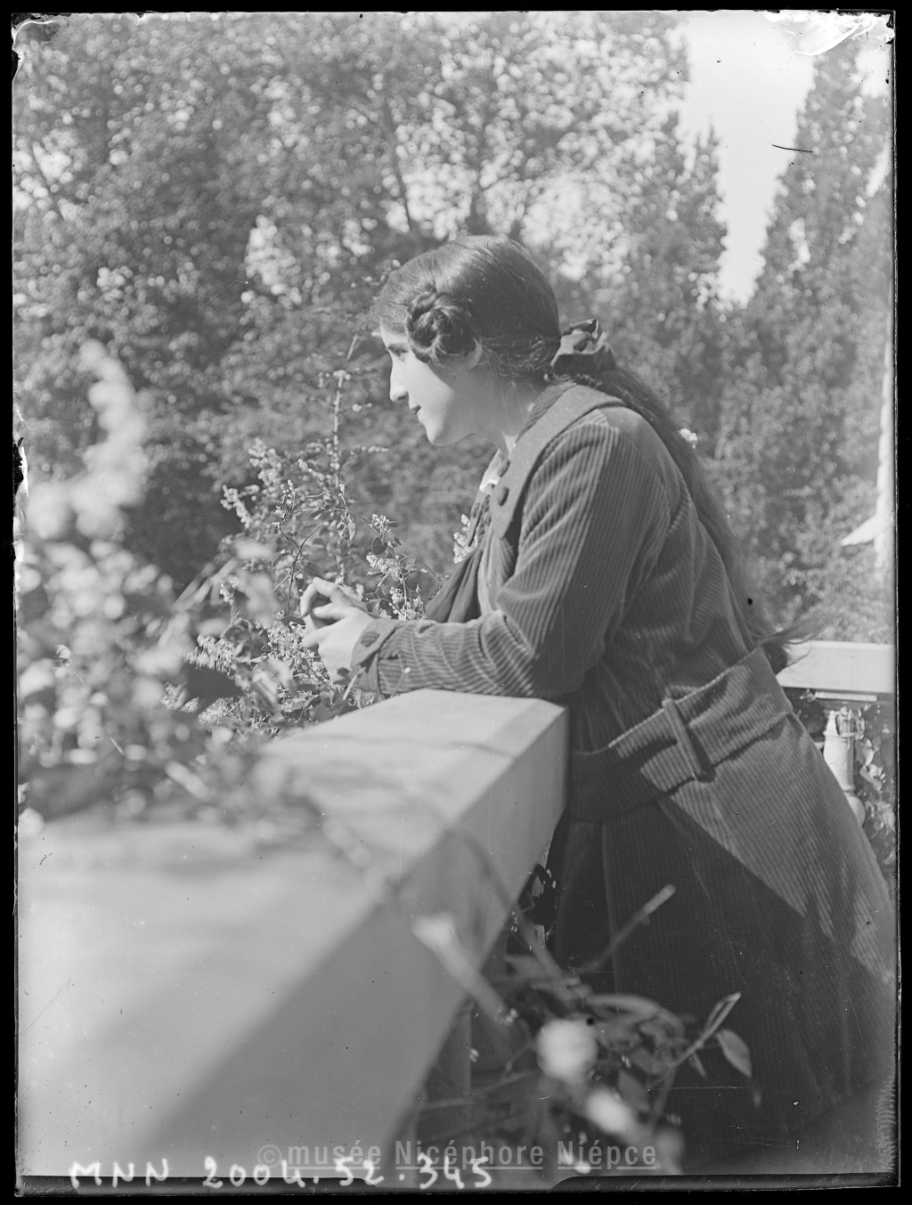 Jeune femme appuyée à la balustrade de la grande terrasse du château de San Carlo
