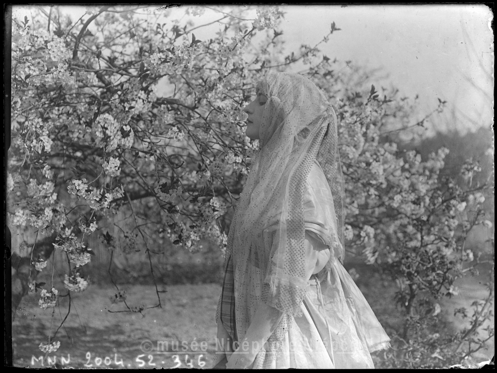 Modèle féminin voilé auprès dun arbre en fleurs
