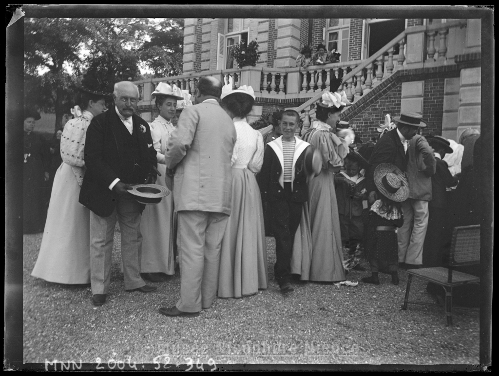 Des invités (à l'occasion d une vente de charité ?) dans le jardin du château de San Carlo