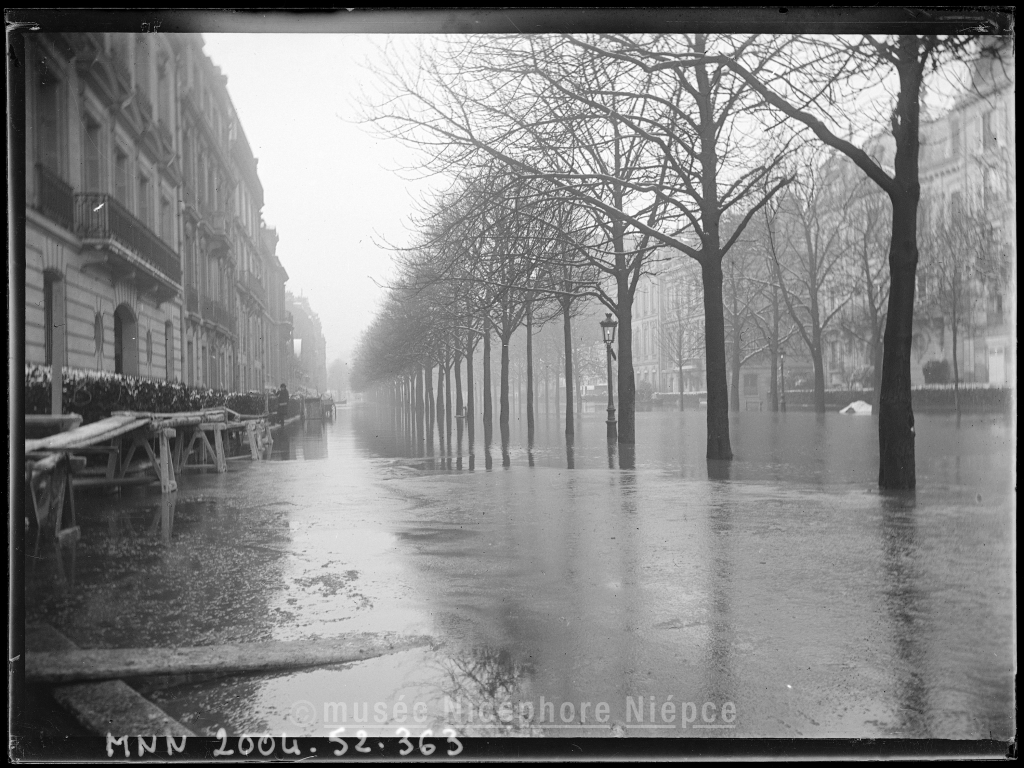Vue du n°26 de l'Avenue Montaigne (à gauche) lors de l'inondation