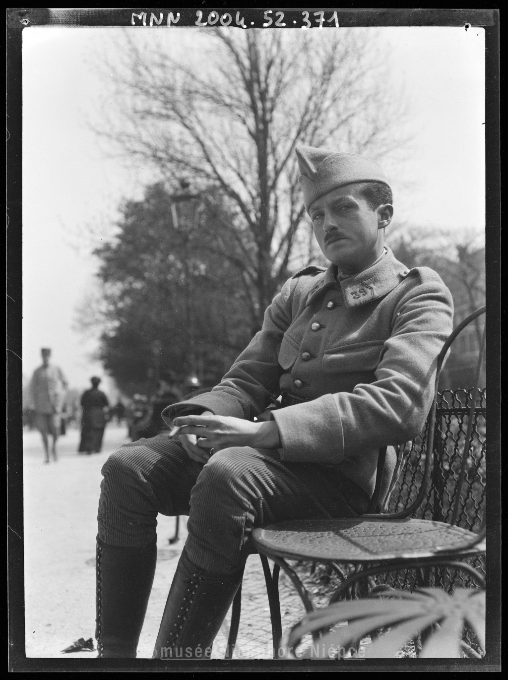 Bob assis sur une chaise le long de l'Avenue du bois de Boulogne (?)