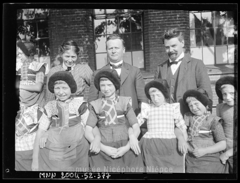 Enfants hollandaises et leurs professeurs dans la cour d'une école (?)