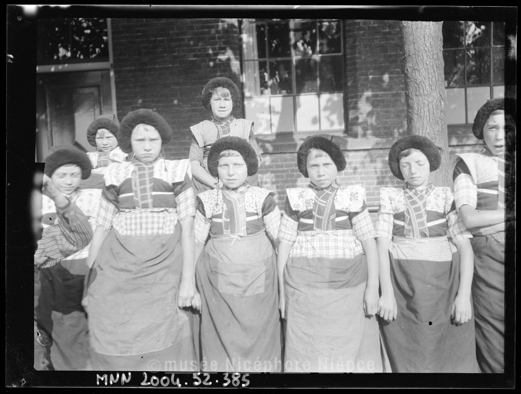 Enfants hollandaises et leurs professeurs dans la cour dune école (?)