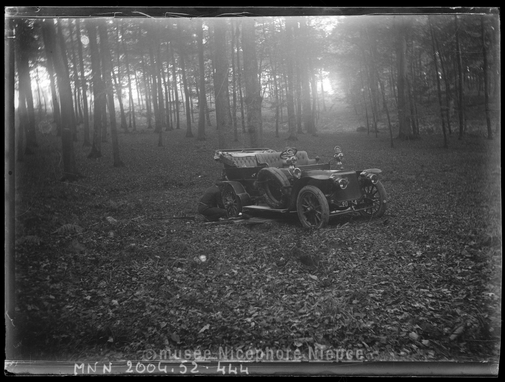 Une des voitures de Demachy dans un sous-bois