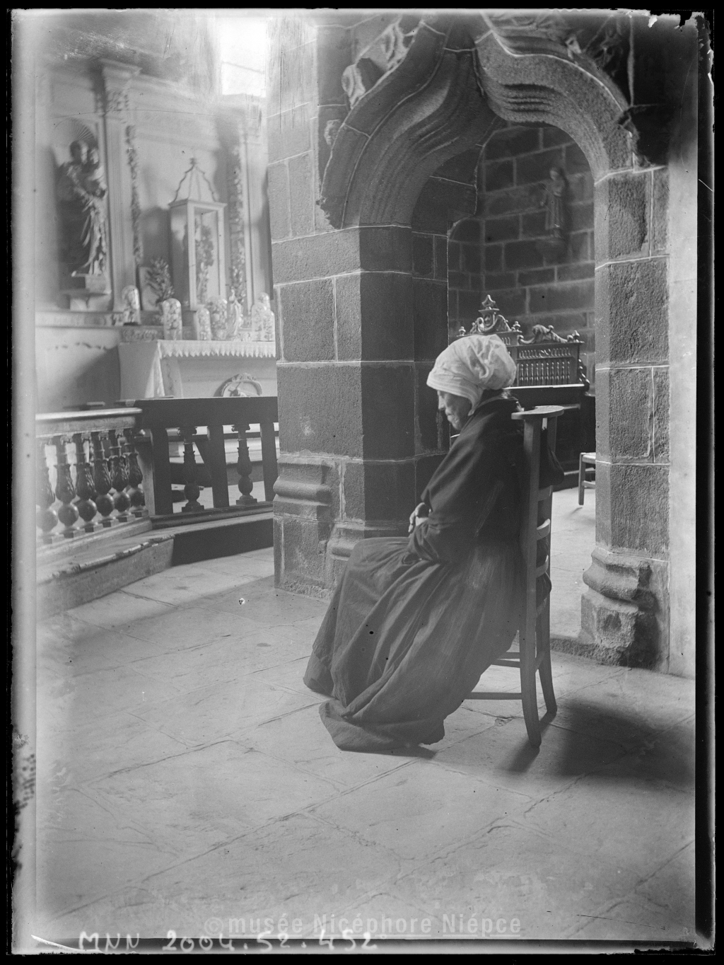 Femme assise dans la chapelle Notre-Dame de la Clarté de Ploumanac'h