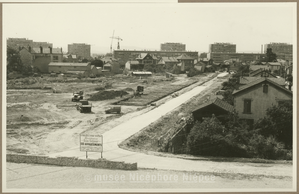 Début des travaux de voirie et de fondations du futur grand immeuble : "Résidence Bon Séjour", entre l'Avenue de Paris et la rue Pierre Deliry 8 Juin 1959
