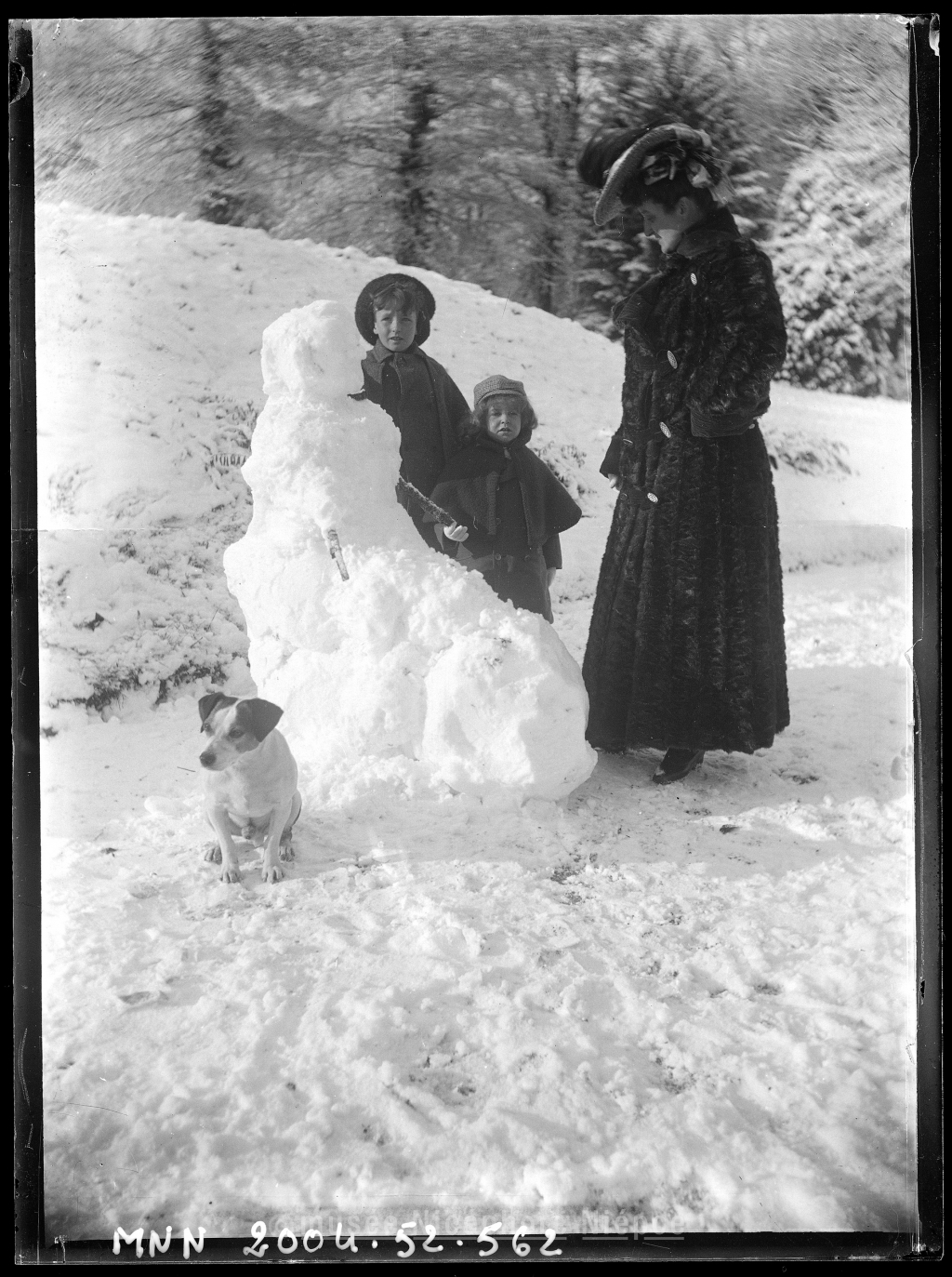 Mme Demachy, Bob et Jack devant un bonhomme de neige