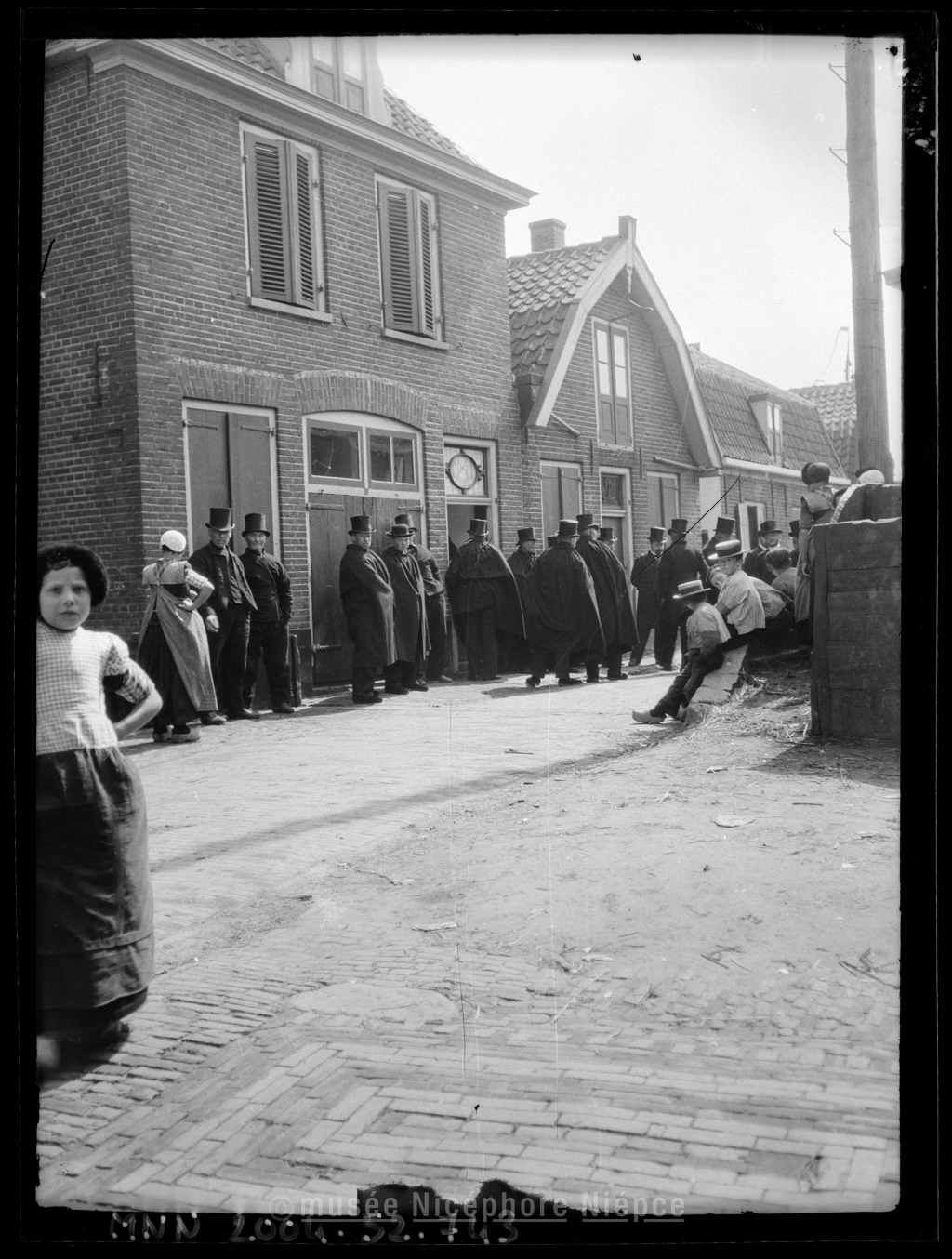 Hommes rassemblés dans une rue