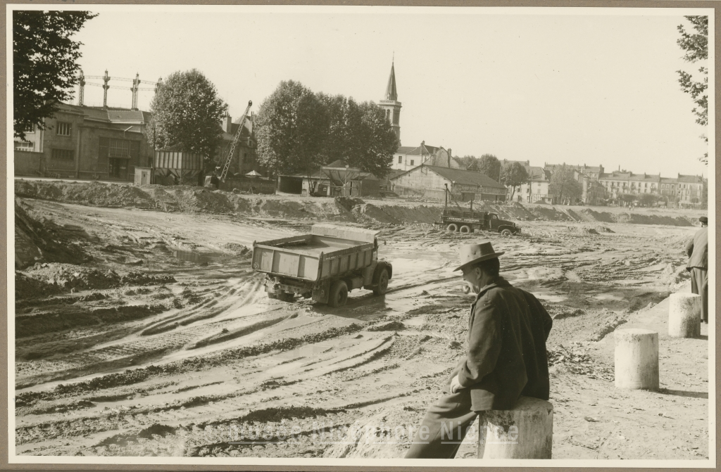 Etat d'avancement des travaux de comblement du Bassin du Canal à la date du 12 Octobre 1959 Usine à gaz-Eglise St Cosme