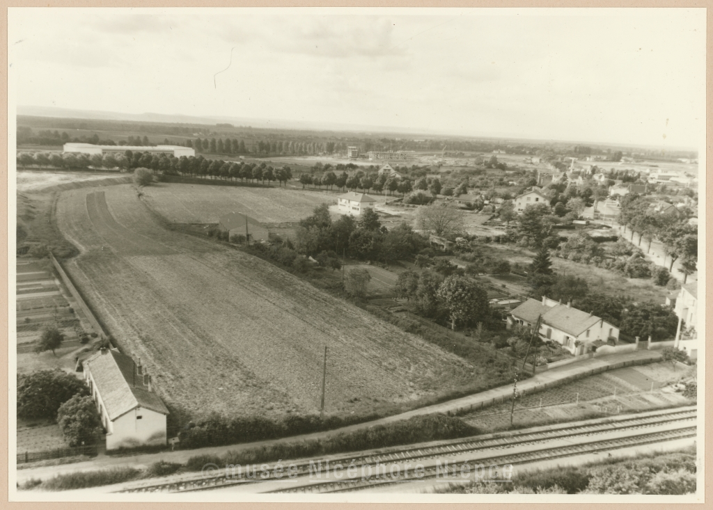 Nouveau quartier de Chalon-Nord-Zône A début des constructions des premiers immeubles En haut à gauche : nouvel atelier des Usines St Gobain pour la fabrication des vitrages multiples 18 Mai 1961