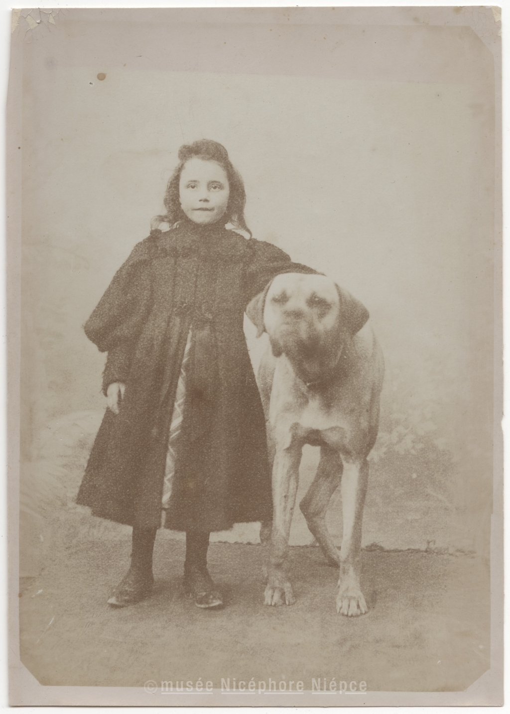 Fillette posant avec un gros chien