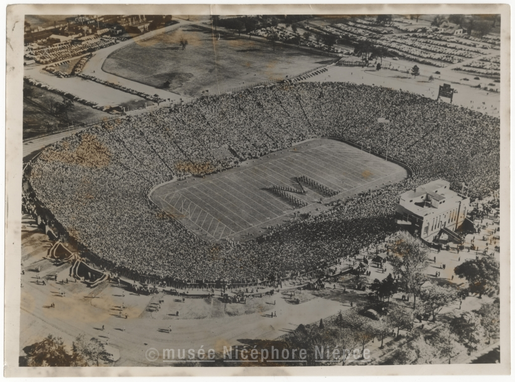 100.000 spectateurs assistent à un match de football au stade de / l'Université de Michigan [...] Le groupe ci