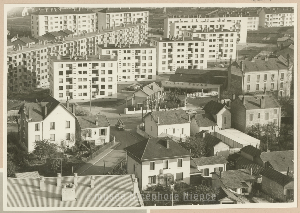 Immeubles entre Avenue de Paris et rue Pierre Deliry Nouveau super-marché "Super Cedam" inauguré le 20 Novembre 1961 Vue prise du haut de l'immeuble tour de l'Aubépin 21 Novembre 1961