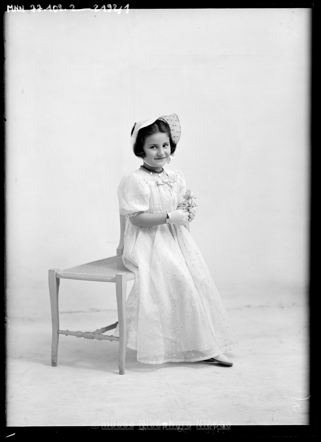assis - coiffe - portrait - en pose - fillette - sourire - Germain EBLE