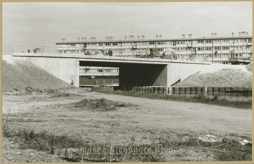 Quartier du Stade : construction du nouveau pont sur le Canal, pour le passage de la voie devant relier l'Avenue de paris à l'axe Nord-Sud Mars 1970