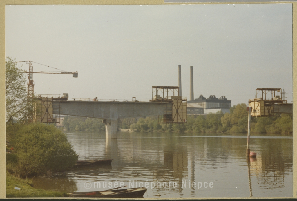 Travaux du Pont-Sud, sur la Saône en Avril 1974